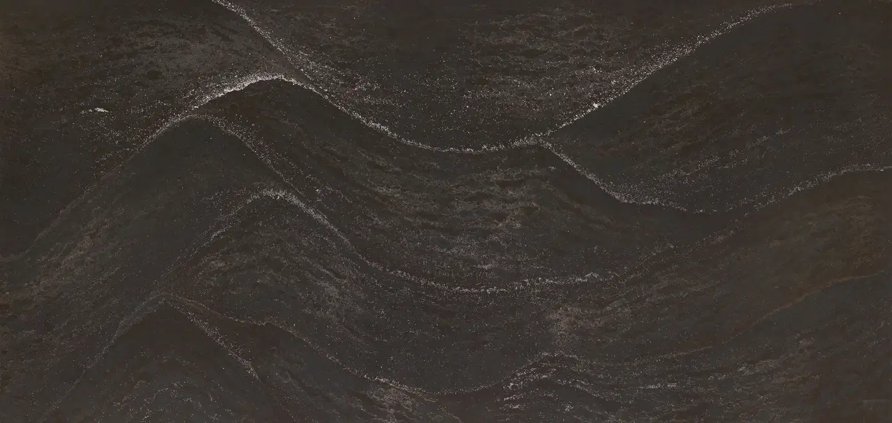 A dramatic backdrop of deep chocolates, smoky charcoals, and steel alloy veining that shifts and changes as light moves across its contours.